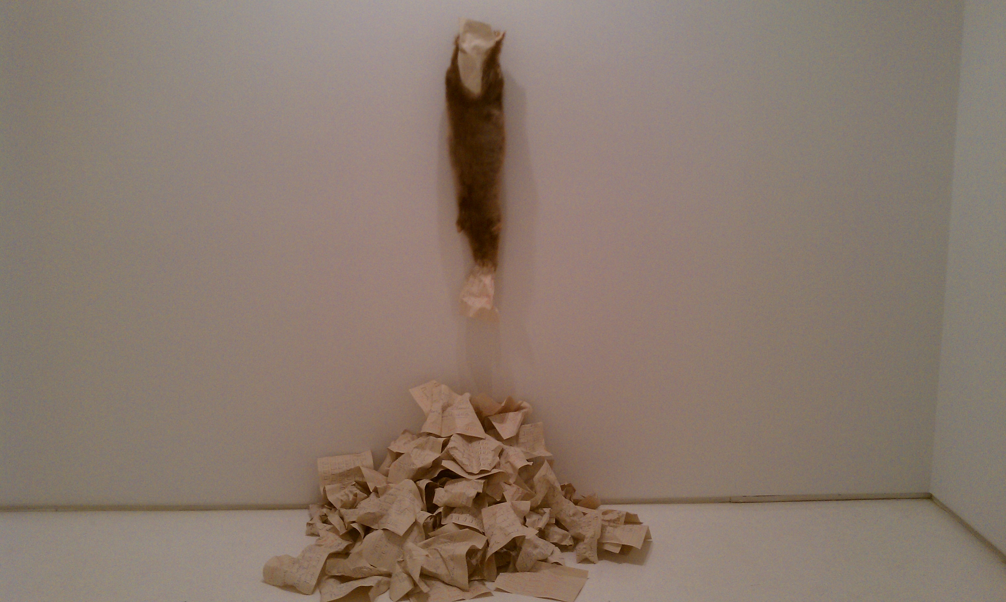 In Big Bambu, by the Starn Twins, Boiseries, by Katrin Sigurdardottir, and County Cork, Ireland by Richard Long, I felt that the primary alteration of perspective was caused by how each art piece utilized space, and the ensuing feeling of dislocation. Big Bambu was situated atop the Metropolitan Museum of Art, with a great view of the New York City skyline and the treetops of a small park below. Walking through Big Bambu caused me to feel as though I were in a gigantic cage, although I didn’t feel trapped or enclosed. Instead, I experienced wonderment and awe looking up and around at the numerous webs and patterns that were created by the intersection of bamboo stalks. The feeling of dislocation was caused by the combination of Big Bambu’s material of choice, bamboo, and the aforementioned space at the top of the museum. Walking through a tangle of bamboo is an experience enough on its own, but doing that while simultaneously seeing a combination of trees, the sky and the New York City skyline created an acutely surreal experience for my sense of sight that I doubt I will experience again any time in the near future.