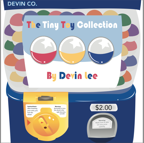 This is a book that I designed for my toy collection. I wanted it to be child-like and wanted to brag about it in a colorful way. The full book can be seen here.