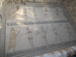 On Friday, we left Agrigento by bus and arrived in Syracuse (Siracusa) in the evening. Along the way we made two stops. One in a town called Caltagirone, a town known for its ceramics and pottery. We were able to visit a shop where were witnessed some locals molding and decorating some plates and figurines. It was interesting to watch exactly how these ceramic materials are created, and walking around the small town for a few hours was fun. Then we headed to a more classical site, the Piazza Armerina. This is a 3rd-4th century late Roman villa, known for its mosaics. Unfortunately, most of the Piazza was closed off for renovations, and was therefore off-limits to the public. The mosaics I was able to see were absolutely fascinating, but I wish I were able to see the entire Piazza. The bus set off again, and we finally arrived in Syracuse after a long day on the bus.