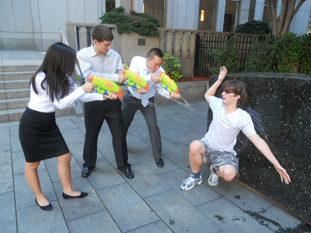 Doris: Oh my god! I love water guns! Work is going to be so much fun now. (To Julian and Kyu) Do you guys think we can have a water gun fight tonight?!